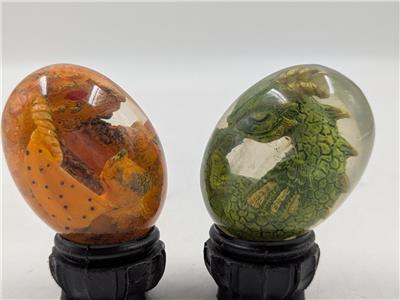 PAIR Resin Dragon Egg Figurines Sculptures Cute Green and Orange Baby Dragon in Transparent Egg