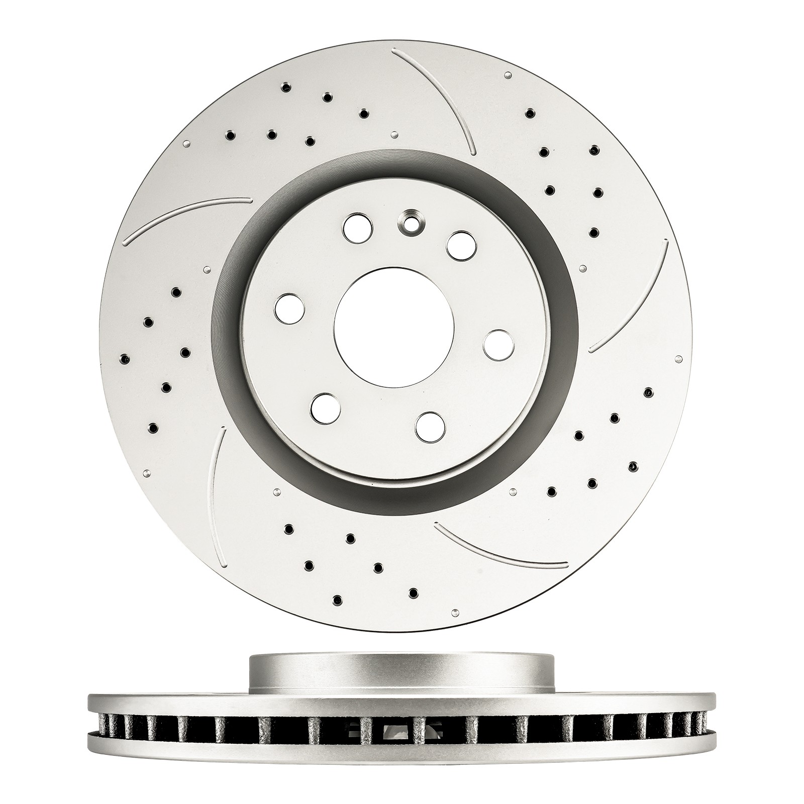 - The drilled and slotted rotor design enhances heat dissipation and improves braking performance, delivering a safer driving experience.