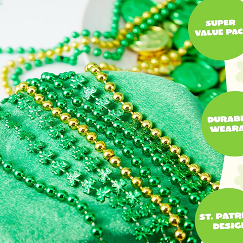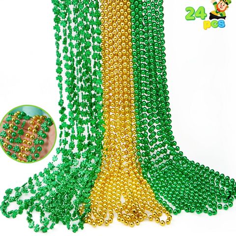 The Joyfy 24 Pcs St. Patrick’s Day Necklace Set is the ultimate accessory for your festive celebrations! This set features a total of 24 necklaces: 8 stunning green bead necklaces, 8 eye-catching gold bead necklaces, and 8 charming green shamrock bead necklaces. Each necklace is designed to bring joy and positivity to your St. Patrick's Day festivities. Made from high-quality materials, these necklaces are not only lightweight but also durable enough to withstand all-day wear during your celebrations. Perfect for themed parties, parades, or as party favors, these necklaces will enhance the spirit of any gathering. The vibrant colors and iconic shamrock design make them an essential addition to your St. Patrick's Day wardrobe. Whether you're hosting a party or attending one, this necklace set ensures you stand out in style!