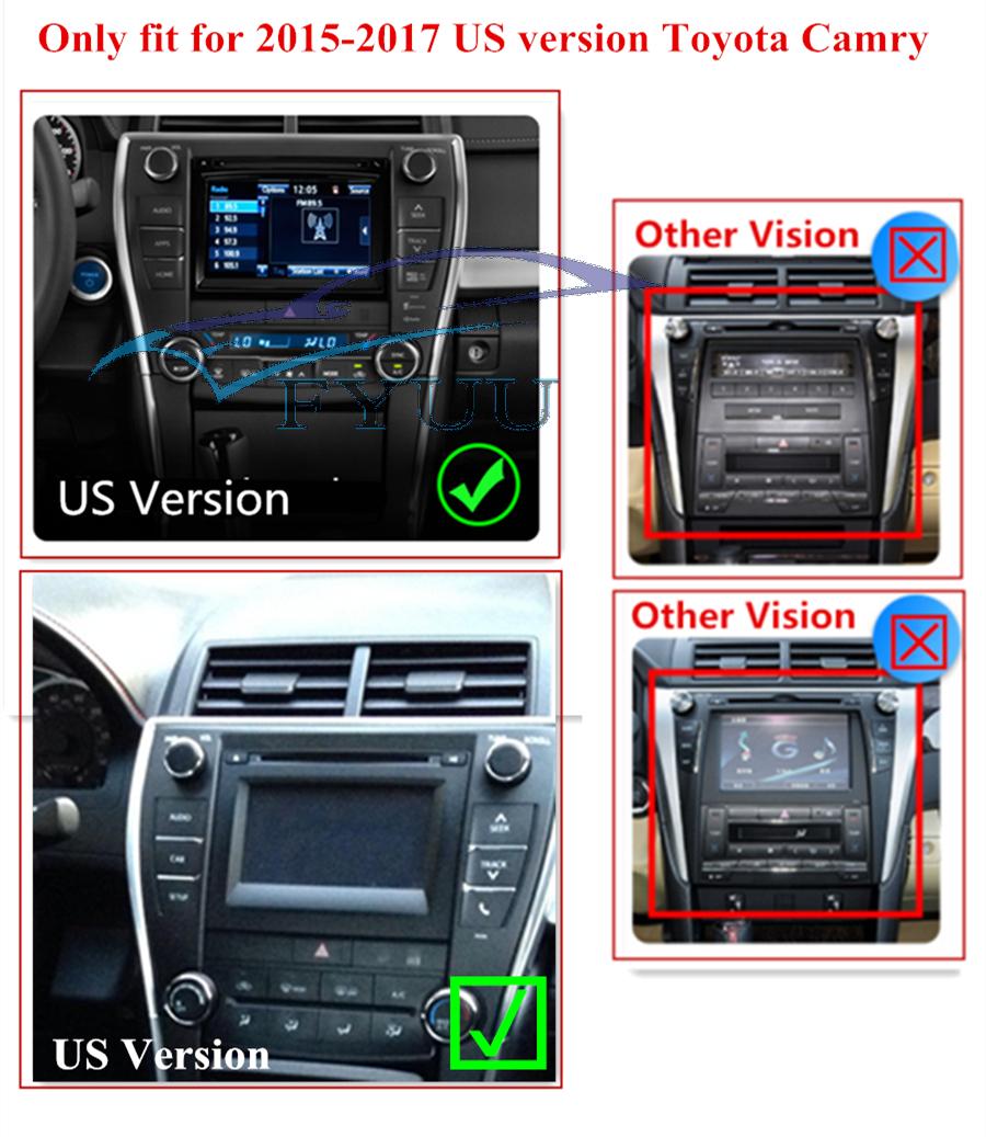 | Fitment | - For Toyota Camry 2015-2017 US Version (Only fit for camry us version) (With canbus, Support original vehicle function) |