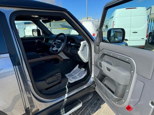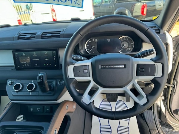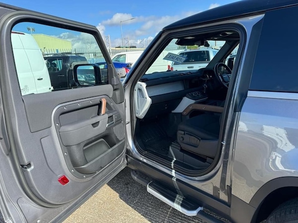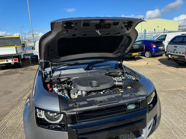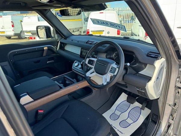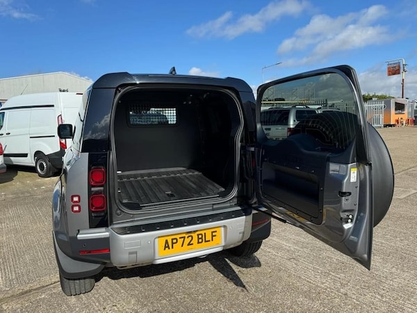 2022 72 LAND ROVER DEFENDER 90 3.0 D250 MHEV AUTO HARD TOP COMMERCIAL IN METALLIC EIGER GREY WITH BLACK EXTERIOR PACK AND EBONY INTERIOR WITH ROUGH-CUT WALNUT VENEER AND EBONY MORZINE HEADLINING, BLACK CONTRAST ROOF, 19"" 6 SPOKE BLACK GLOSS ALLOY WHEELS, FULL SIZE SPARE WHEEL WITH BODY COLOURED SPARE WHEEL COVER, 8 SPEED AUTO, TURBO DIESEL, EURO 6, MULTI-FUNCTION STEERING WHEEL, CRUISE CONTROL, MULTI-AIR BAGS, COLD CLIMATE PACK/AIR CONDITIONING, HEATED SEATS, HEATED STEERING WHEEL, HEATED WINDSCREEN, HEATED WASHER JETS, HEADLIGHT POWER WASH, AUTOMATIC HEADLIGHT LEVELLING, PREMIUM LED HEADLIGHTS WITH SIGNATURE DRL, FRONT FOG LIGHTS, KEYLESS ENTRY-PASSIVE ENTRY/PUSH BUTTON START, TWO KEYS, ELECTRIC WINDOWS, ELECTRIC ADJUST & FOLDING MIRRORS, 360 CAMERAS, PARKING SENSORS, ANDROID AUTO/APPLE CARPLAY, SAT-NAV/MEDIA/DAB/BLUETOOTH/STEREO, SECURE TRACKER PRO, ELECTRICALLY DEPLOYABLE TOW BAR, ONE OWNER FROM NEW WITH ONLY 3200 MILES, IN NEW CONDITION!