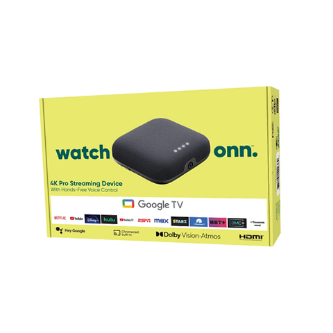 Next level streaming at an affordable price! The Onn. 4K Pro | Google TV offers a cinematic experience with 4K UHD picture quality and enhanced Dolby Vision and Dolby Atmos. Plus, upgraded features like hands-free voice control with Google Assistant, find my remote, and smooth streaming with fast Wi-Fi 6.