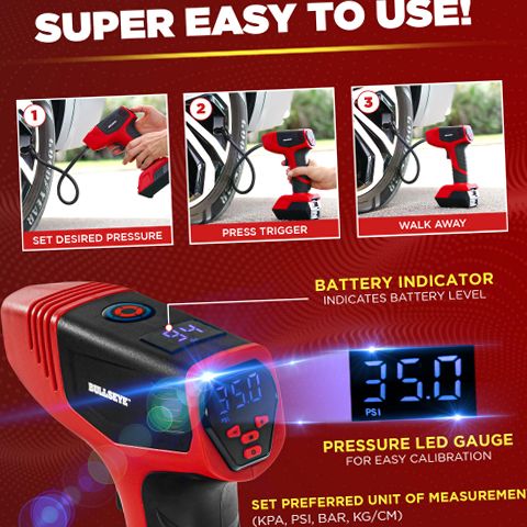 Bullseye Air Inflator Air Compressor Tire Inflator Car Auto Tire Pump Portable with Digital Pressure Gauge.