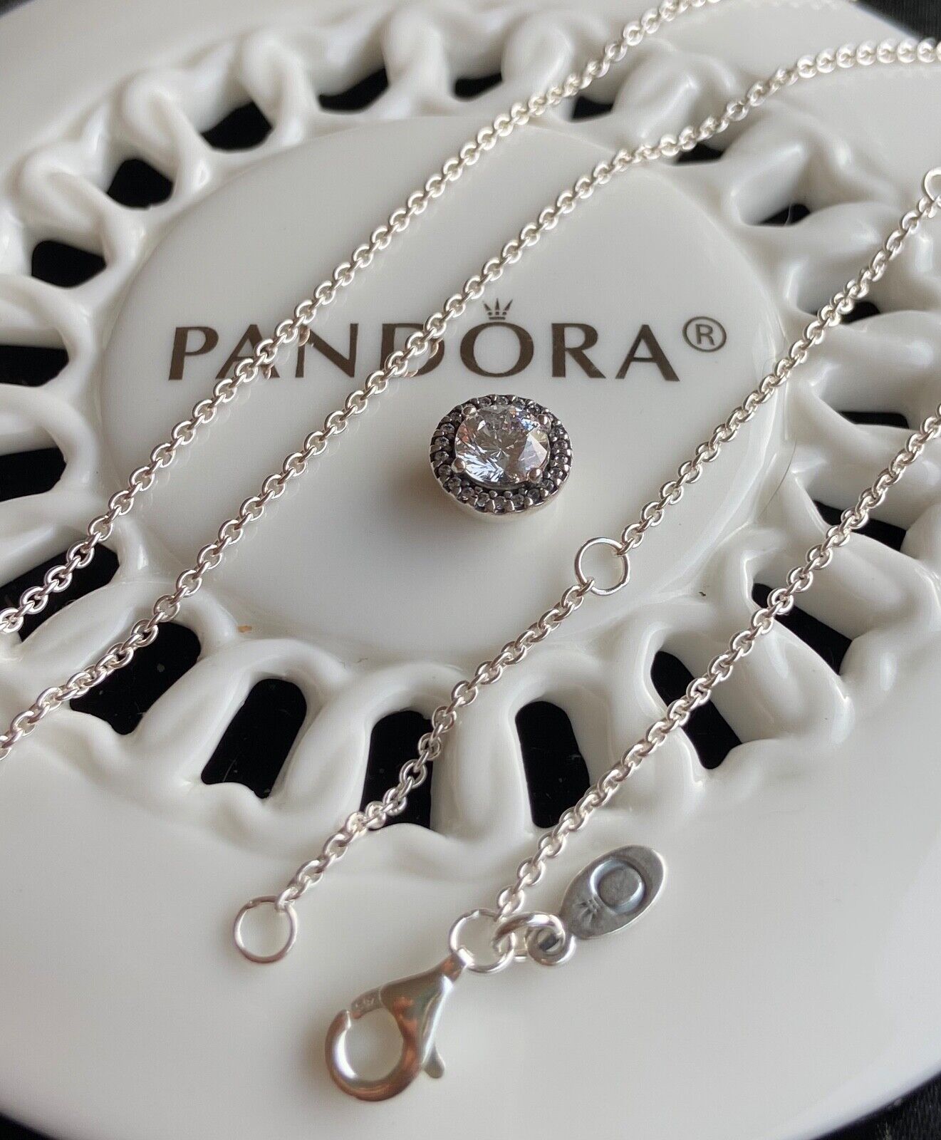 Authentic Pandora Round Sparkle Halo Necklace #396240CZ-45