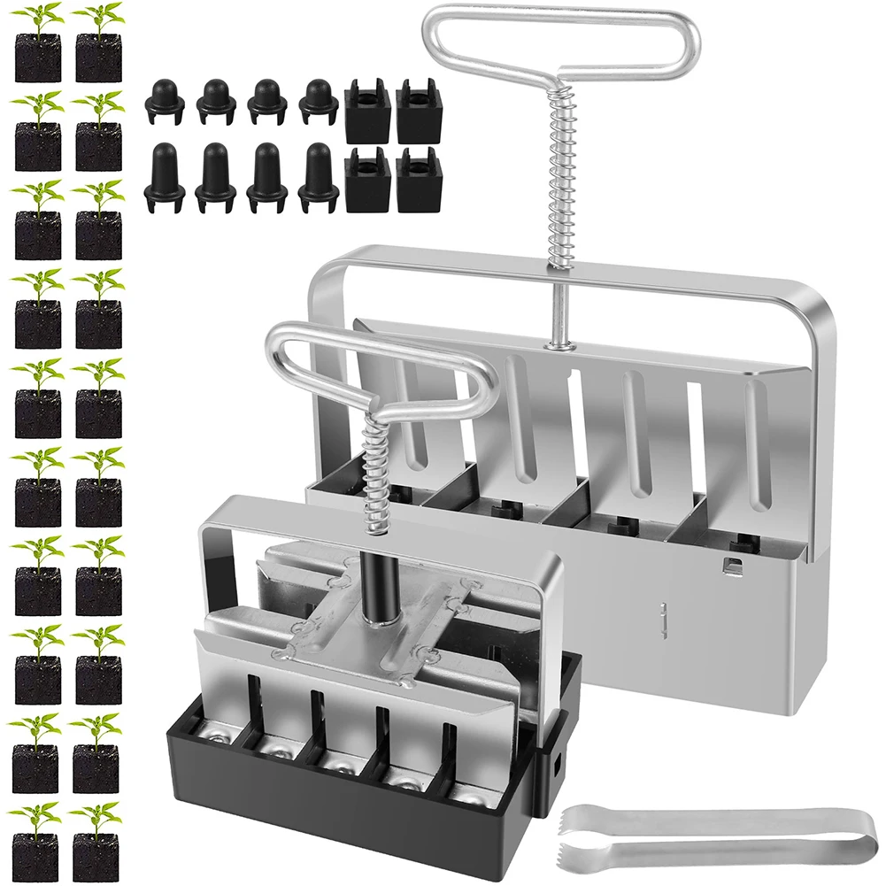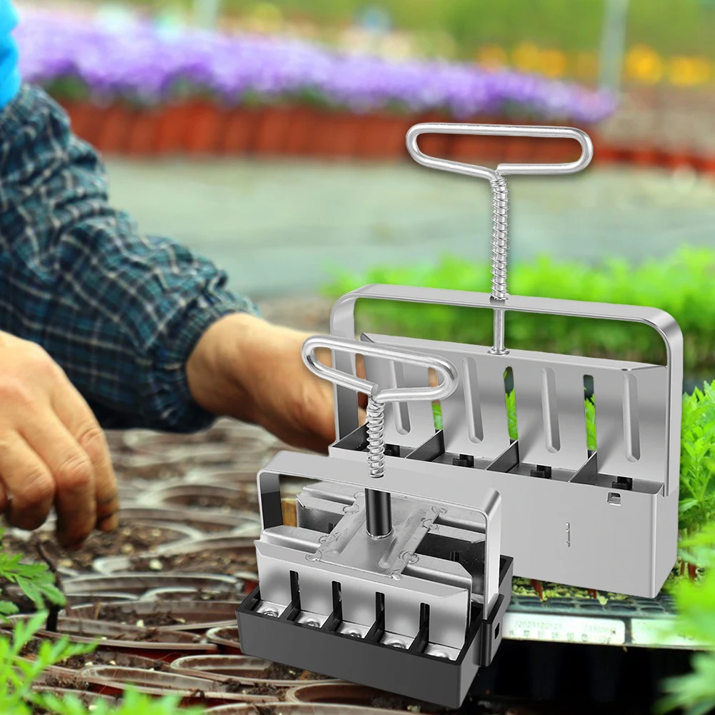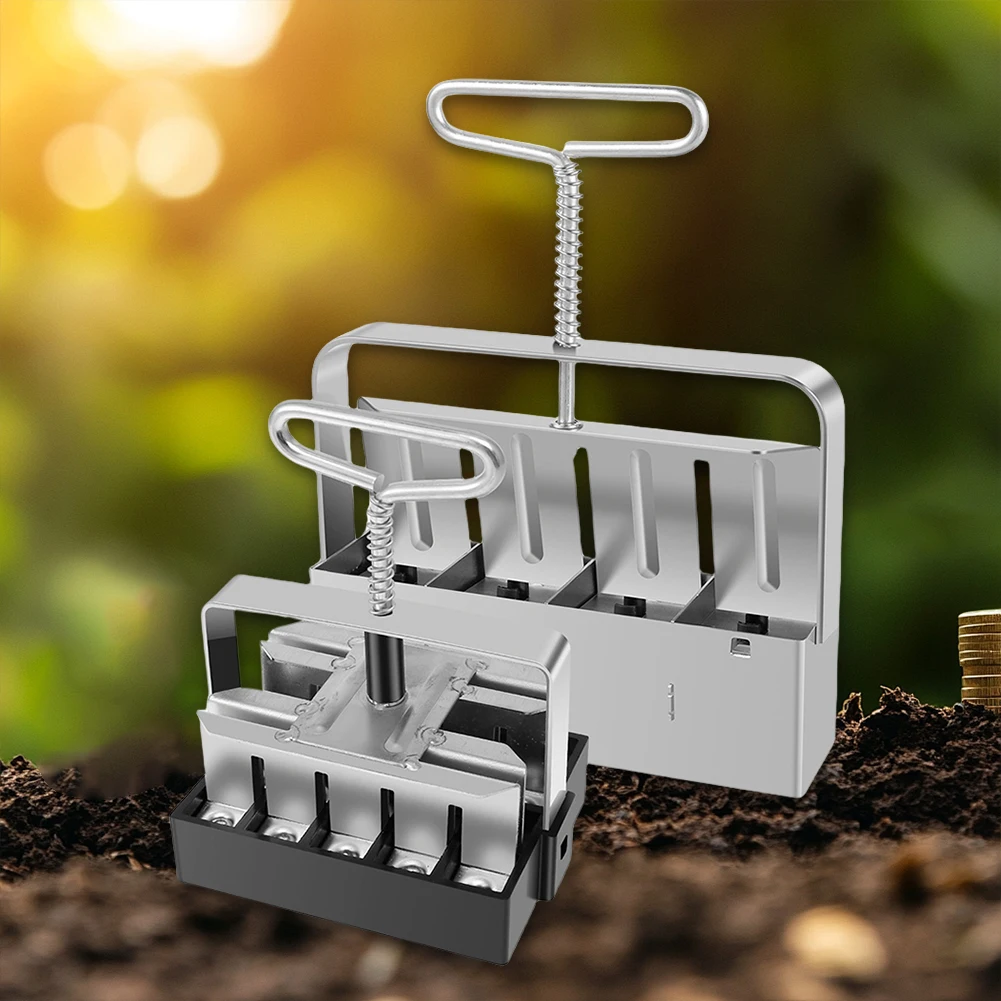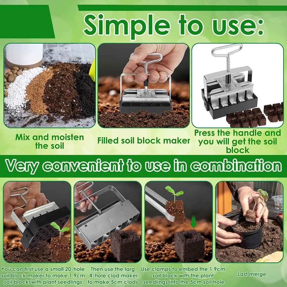 Soil Blocker Manual Clod Maker Garden Tools Seeding T ools Garden Tools Durable and environmentally friendly - Made from high quality galvanized steel, the Soil Block Maker is strong, durable and well-built to last for years - reducing waste of plastic seed cell trays. Simple but innovative - A smooth, simple action to quickly make a set of four soil blocks of approx. 5.1 cm square. Simply mix and moisten your soil, press with the comfortable handle and plant your nursery! Each block has an extra height of approx. 6.1 cm to ensure that the soil is packed more durably for a more durable finished cube. ERGONOMIC HANDLE DESIGN - The manual quad soil block maker handle features non-slip cushioning and is ergonomically shaped for easy planting for every season. NURSERY FRIENDLY - The soil cubes produced by the soil cube maker minimize damage to fragile root systems during transplanting and avoid root knots. |