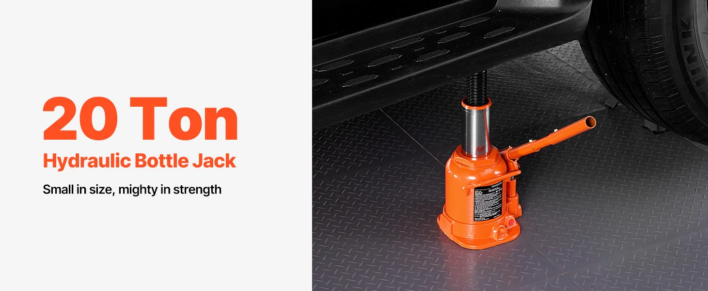 Powerful Load Capacity: Our hydraulic bottle jack supports up to 20 tons, easily lifting various vehicles like pickups, trucks, and SUVs for tire changes, part repairs, and more. Ideal for heavy-duty jobs, this welded hydraulic car bottle jack handles large loads with ease.