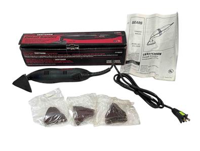 Up for your consideration is a Craftsman Detail Sander, Model 911600, complete with sanding angles and its original box. The box measures approximately 15.5" wide x 4" deep x 3.5" high.