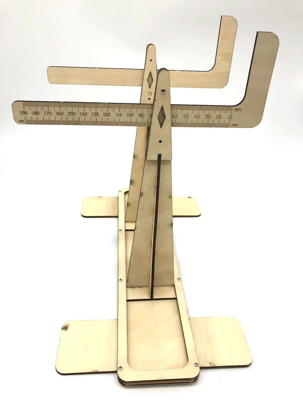 It is made of balsa wood, you need do some simple assemble. There is an easy measurement system with a sliding ruler.