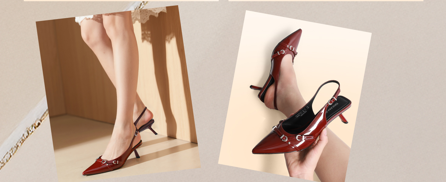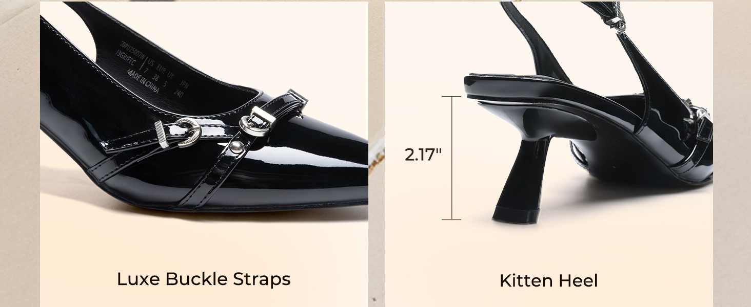 Shine & Define: Polished buckle and stud straps give these closed-toe heels a chic, modern edge.