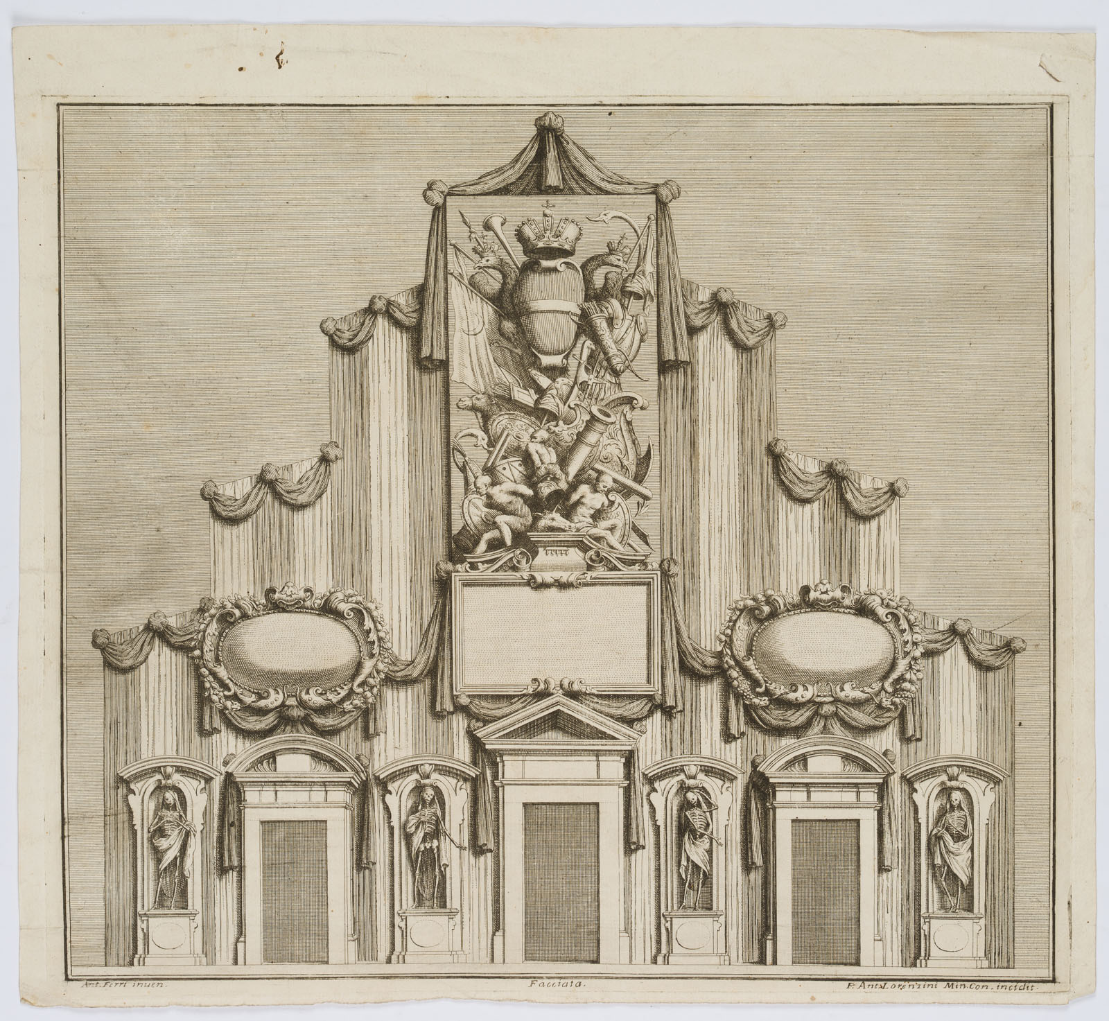 - Bezeichnung: Unten im Druck signiert: "Ant. Ferri inuen. / F. Ant. Lorenzini Min. Con. incidit".