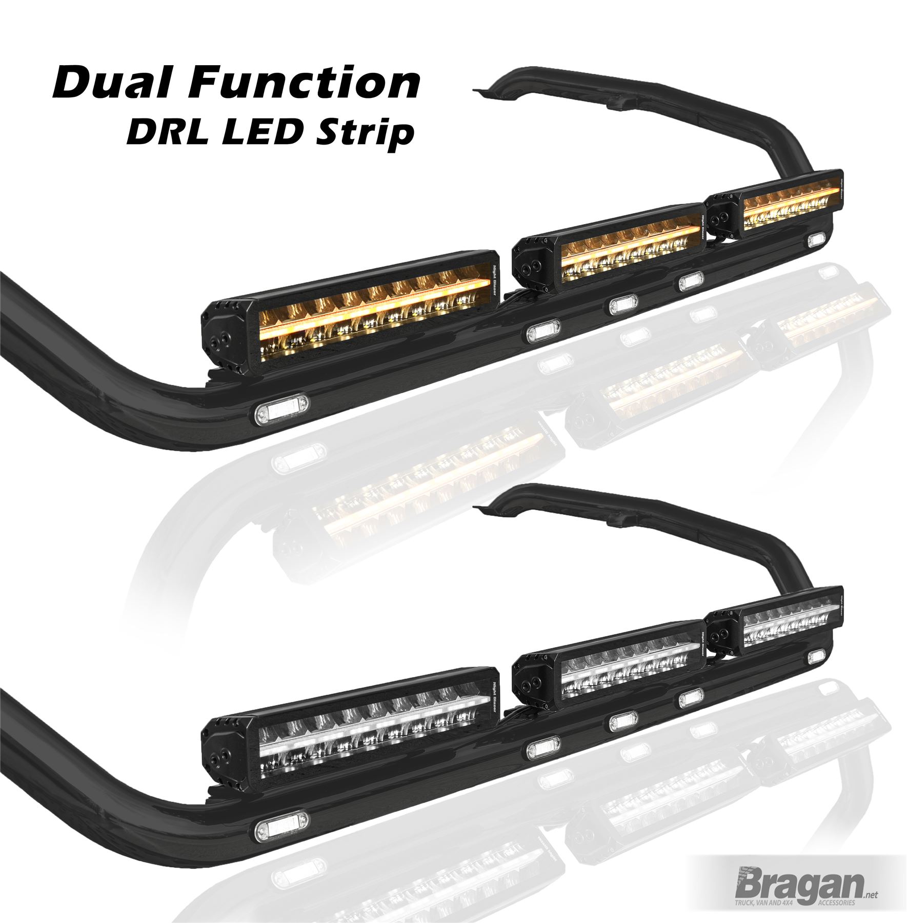 Comes with dual function Spot Light / DRL (Daytime Running Light / Parking Light) 17.5" Black Aluminium Dual Function LED Spot Light Bar x3. These light bars come equipped with 7D Reflectors, enabling a high level beam of focus, ensuring the maximum amount of light at the greatest distance. These LED Light Bars, not only offer superb illumination, but are also manufactured to an extremely high standard, and come complete with a stylish black aluminium housing and stainless steel brackets.