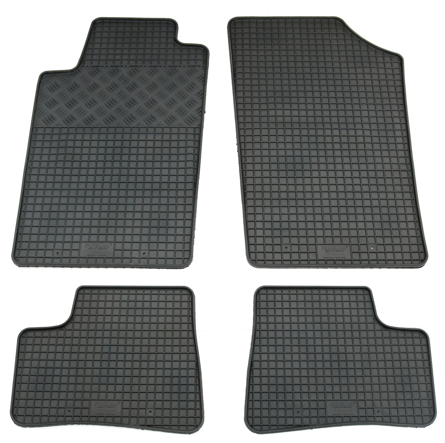 Fahrzeugspezifische Gummi-Matten, aus besonders haltbarem, hochwertigem Gummi-Gemisch gefertigt (kein Plastik), lösemittelbeständig und wasserundurchlässig.