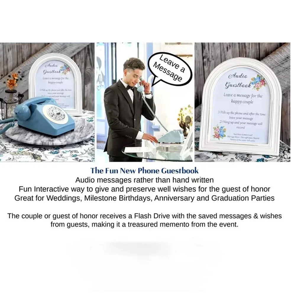[Vintage Style]Our vintage style audio guestbook phone is the ultimate way to capture your guest’s message. Simply pick up the phone, leave your message after the beep, and hang up. Makes it super easy and fun for guests to leave their own recorded message for your special occasion.