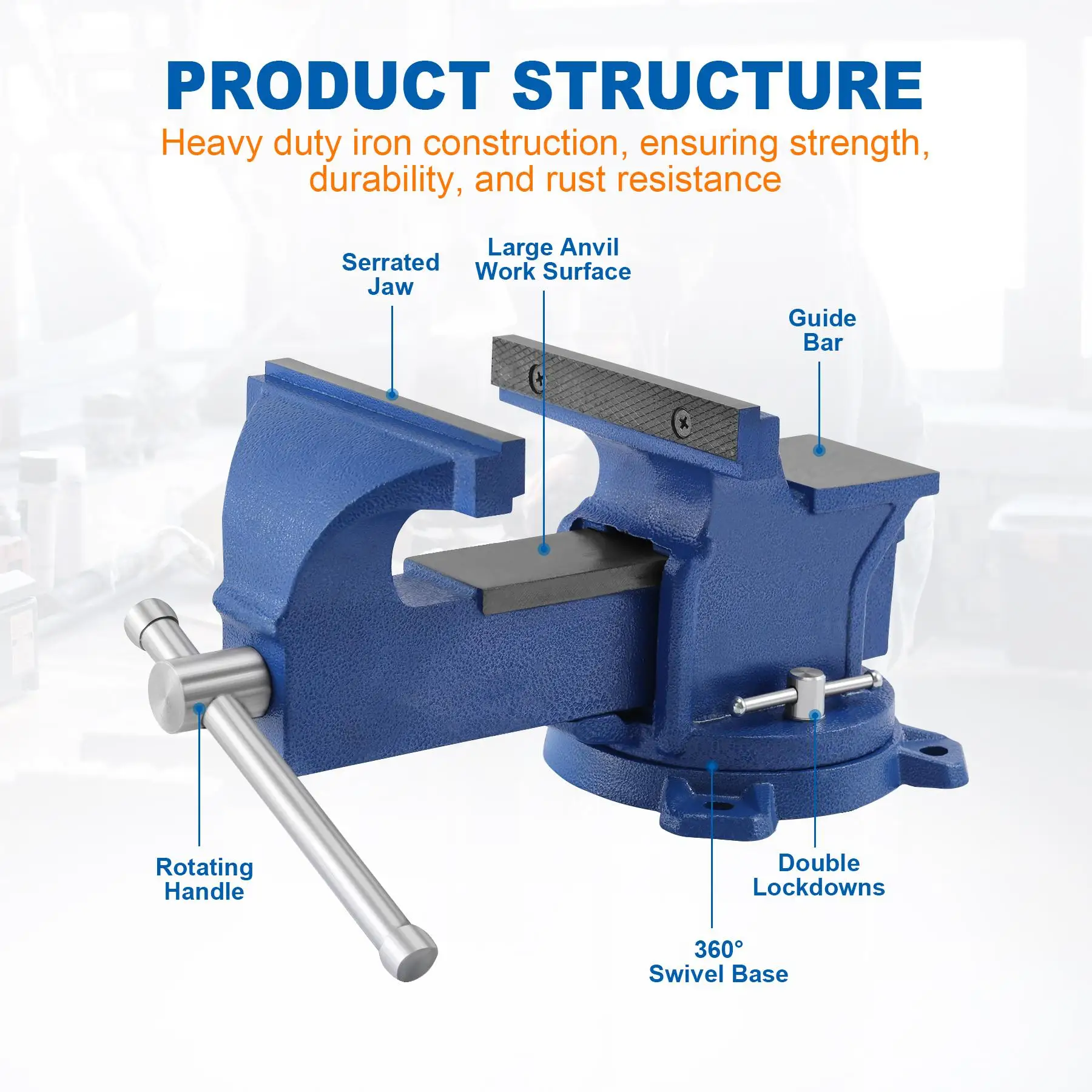 Material updated, all made from high strength ductile iron, bench vise can withstand a tough environment.