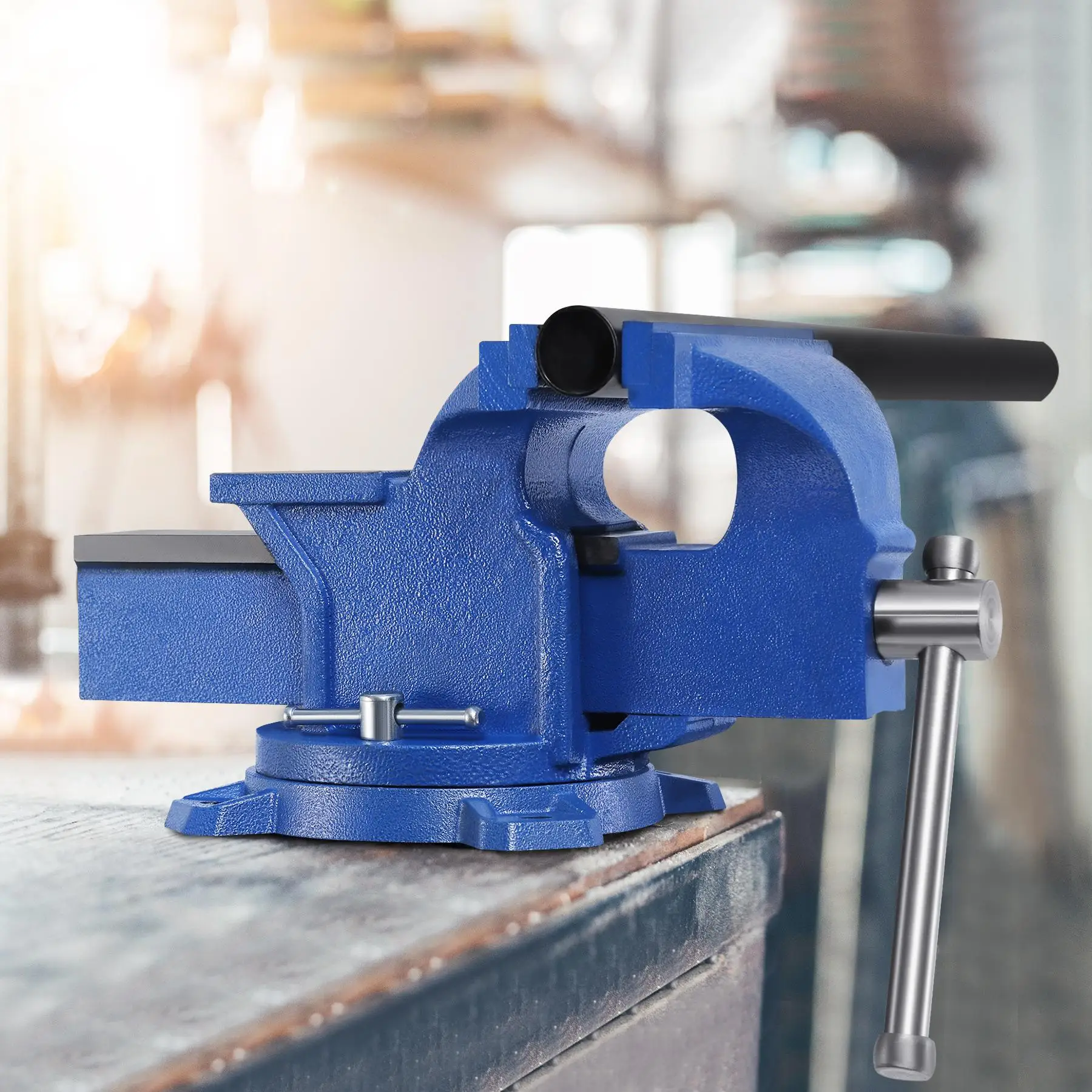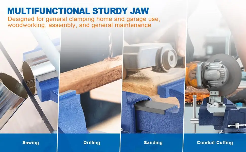 This 6 inch vise is the best industry vise or heavy-duty vise. It is complete sealed, waterproof, dustproof, and rust resistant. It can be wildly used for workshop, and also be used outdoors. It can grind, cut and etc. Tapping work can also be done on the anvil of bench vise.