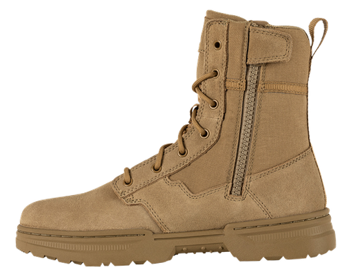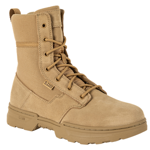 Built to handle the most demanding jobs and assignments in dry, arid regions, 5.11 Tactical Speed 4.0 ARID Side Zip Duty Boots for Men offer comfortable stability that lasts as long as you do. Combining tough, breathable nylon through the ankle and shaft with durable suede leather, the 4.0's uppers deliver ventilated, lightweight support all day long. Field-proven YKK side zippers (with hook-and-loop zipper tabs) make it easy to slip these boots on and off at either end of an assignment. Force Foam heel cushioning and OrthoLite footbeds cushion and support feet on every step. Made to keep feet comfortable in hot and demanding situations, this boot features a heat deflecting layer over its slip- and oil-resistant outsoles to deflect radiant heat when you are working over hot surfaces. Stitched outsole construction for added durability. Mesh tongues give the boot additional abrasion resistance and breathability to surround your feet completely in breathable protection.