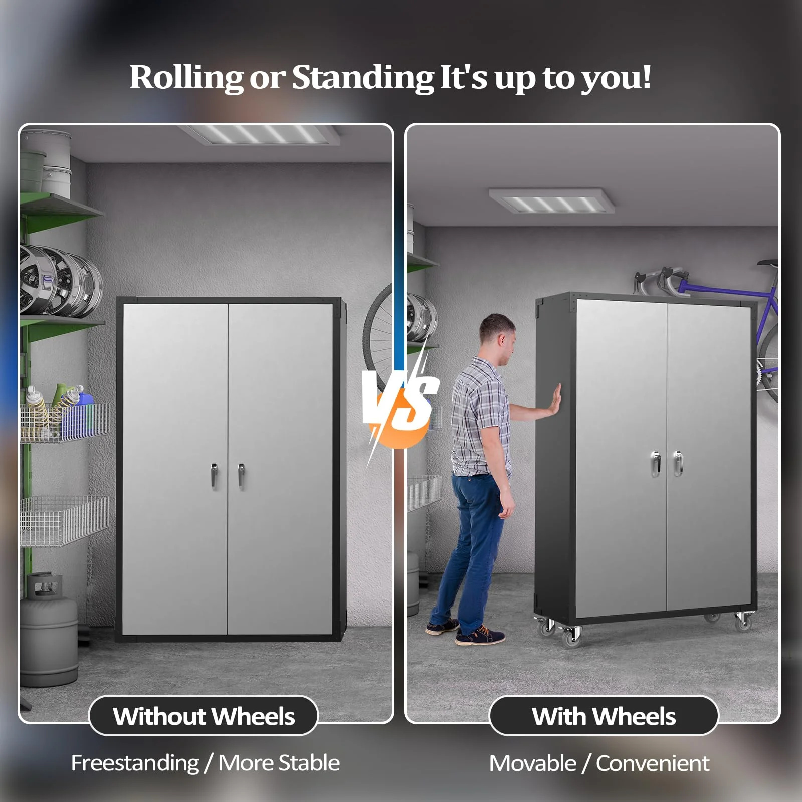 garage storage cabinet has spacious storage space with 5 compartment