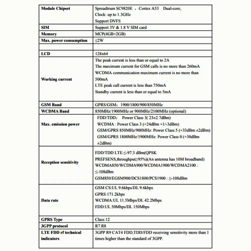 LTE FDD rf technical indicators: 3GPP R9 CAT4 FDD,TDD/FDD receiving sensitivity more than 1 times higher than the standard of 3GPP.