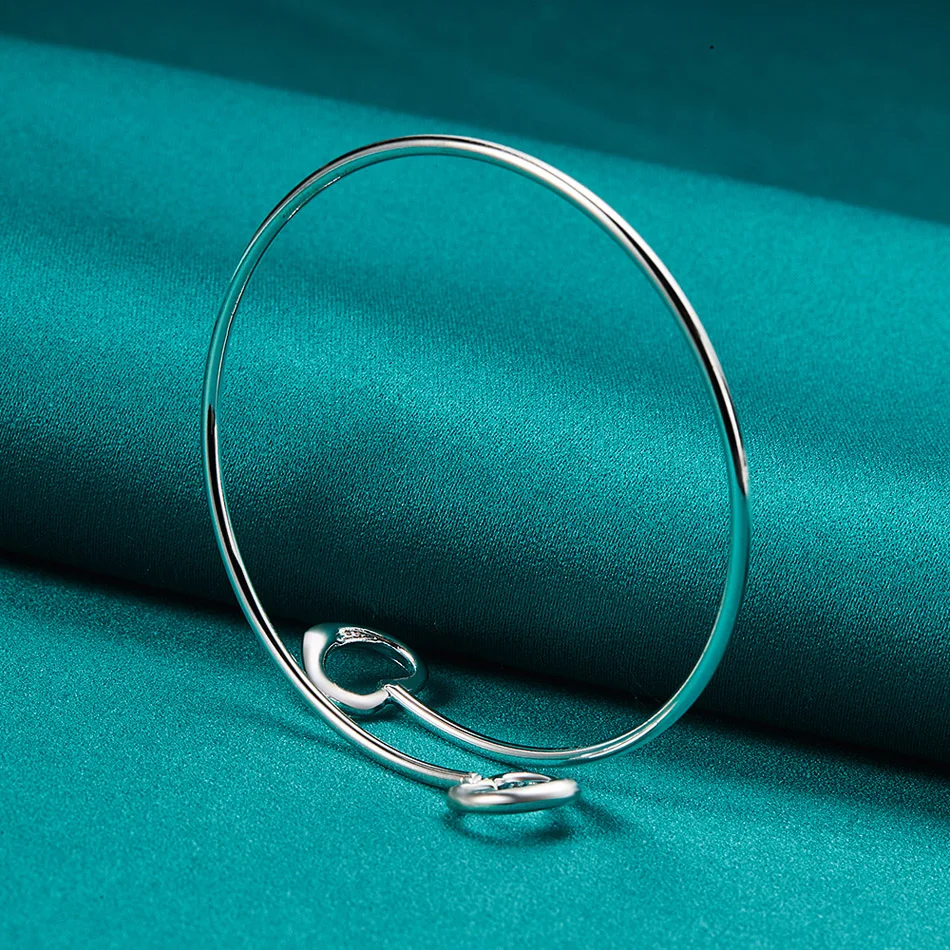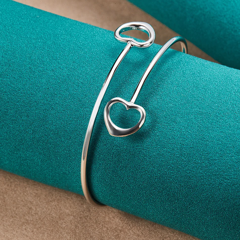 URMYLADY 925 Sterling Silver Double Heart Adjustable Bangles For Women Wedding Engagement Fashion Charm Jewelry
