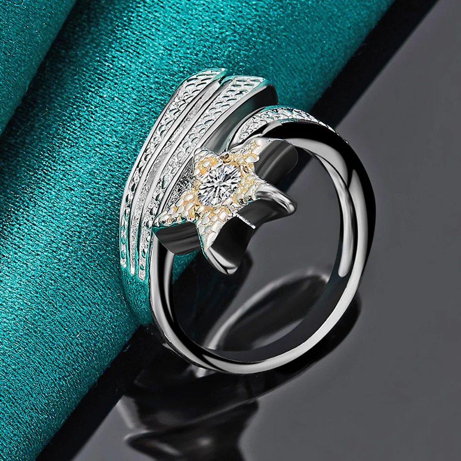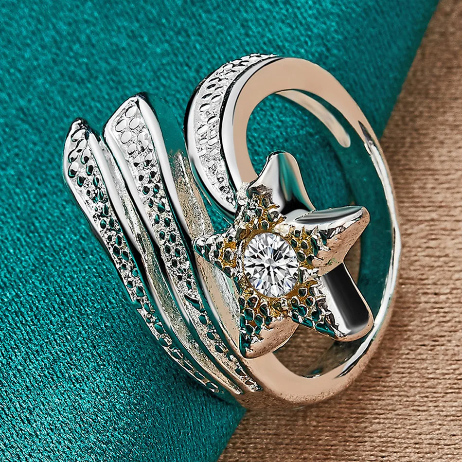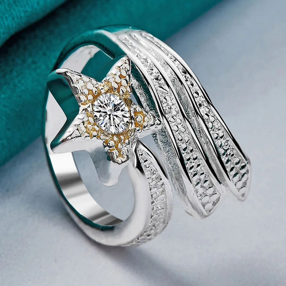 URMYLADY 925 Sterling Silver Star Zircon Ring For Women Wedding Engagement Party Charm Fashion Jewelry