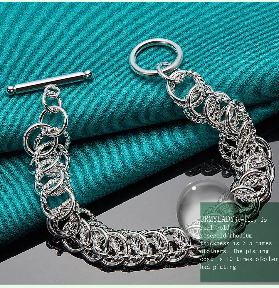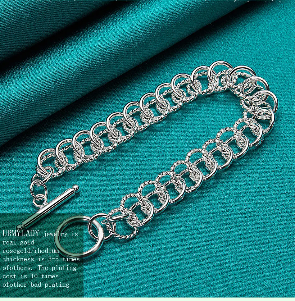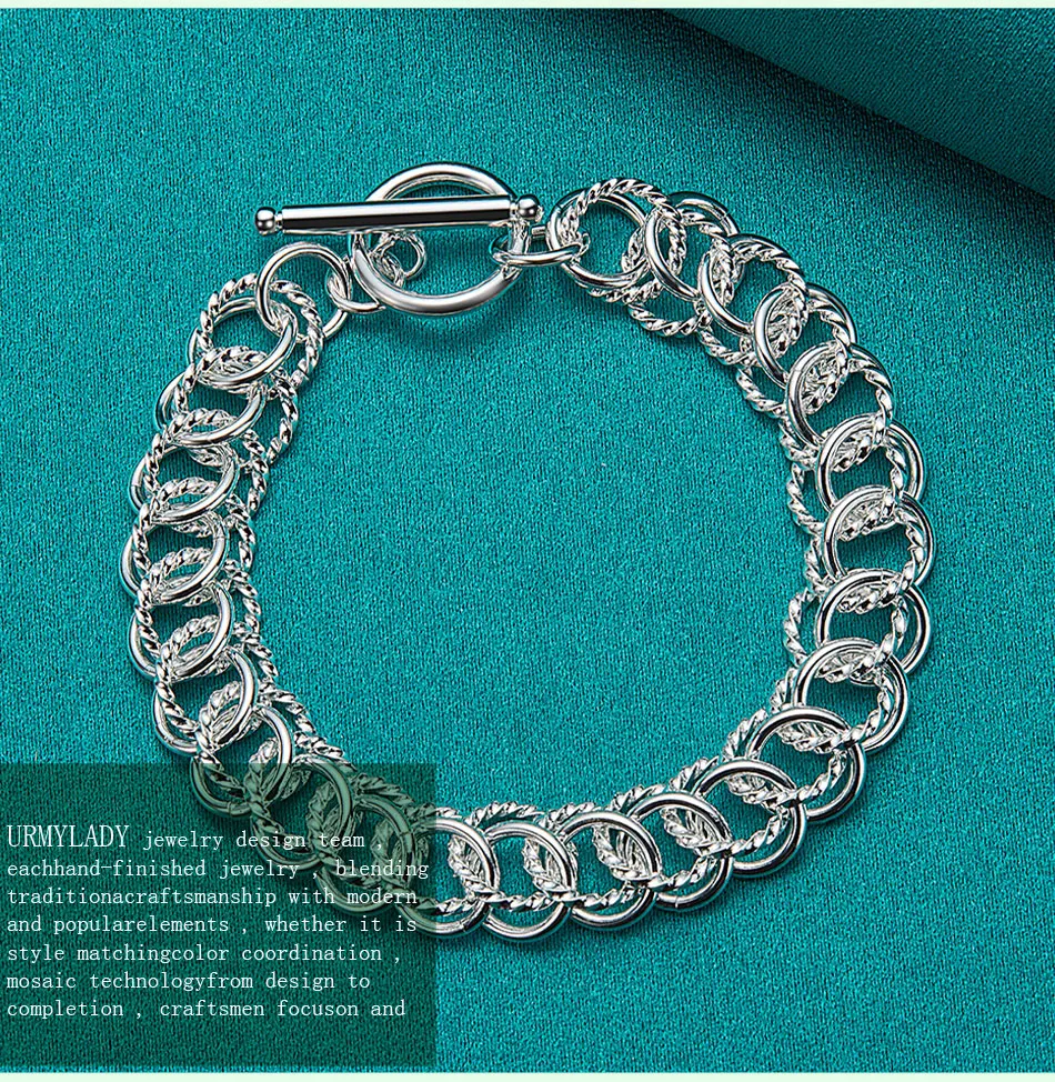 URMYLADY 925 Sterling Silver Multi Circle Chain Bracelet For Women Wedding Party Fashion Charm Jewelry