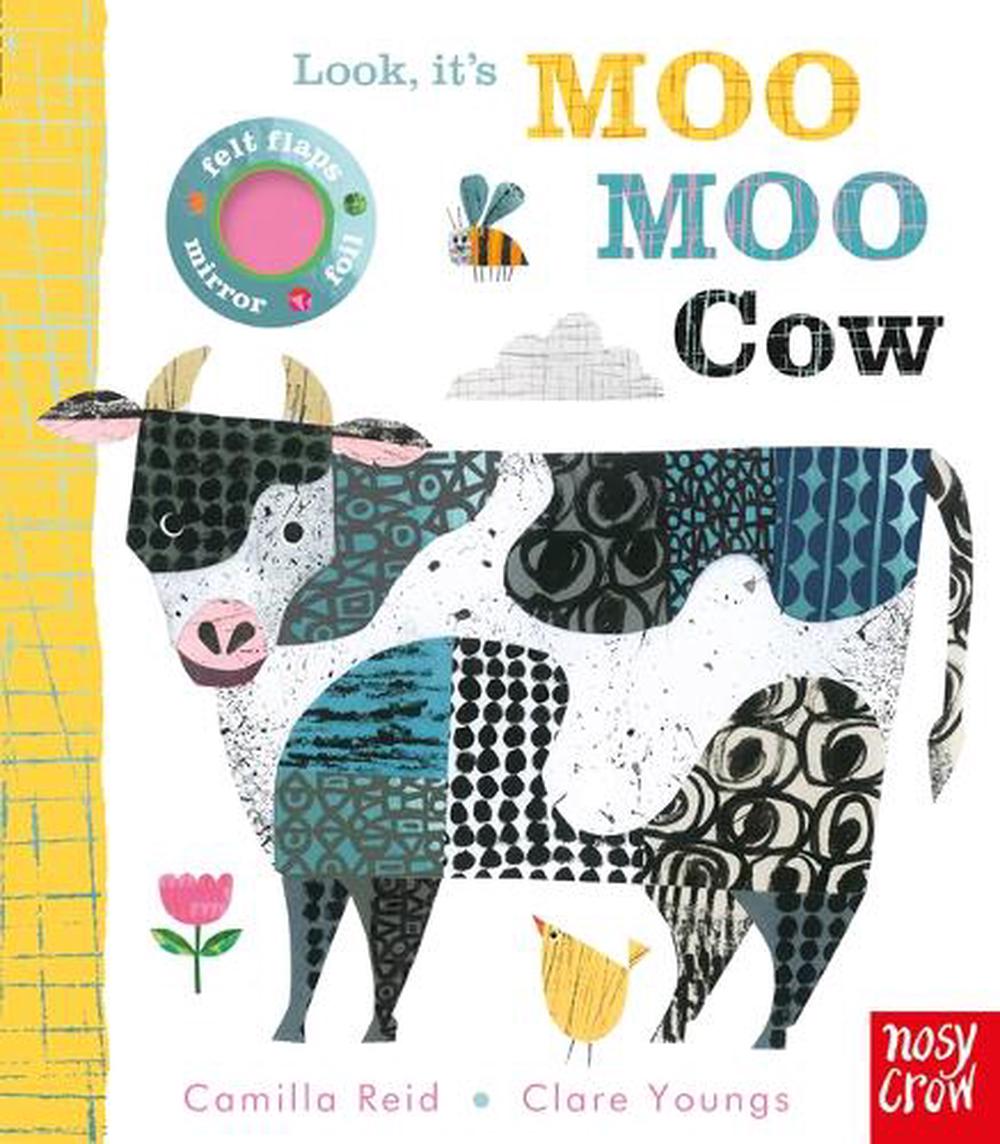 An exciting multi-sensory board book series written by Camilla Reid, with illustrations from acclaimed collage artist Clare Youngs! Preschoolers will adore Clare Youngs's friendly animals with their high-contrast collage artwork, decorative foil highlights, and signature animal noises-but there's a tiny creature to find behind a tuggable felt flap, too! In this book, you'll meet Baa Baa Sheep, Cluck Cluck Hen, Oink Oink Pig, and Moo Moo Cow herself. With a final "recap" page of animal noises, and the question, "But what noise do YOU make?,", little readers will enjoy lifting the last flap and saying "hello" to themselves in the surprise mirror! Visually gorgeous and with a genuinely engaging hide-and-seek narrative, this is a stunning new series from the author behind the bestselling children's series Felt Flaps, Pip and Posy, Bizzy Bear, and Peekaboo. Listen to the free Stories Aloud audiobook- just scan the QR code on the back cover to read along with the story! Other Books in the Series: