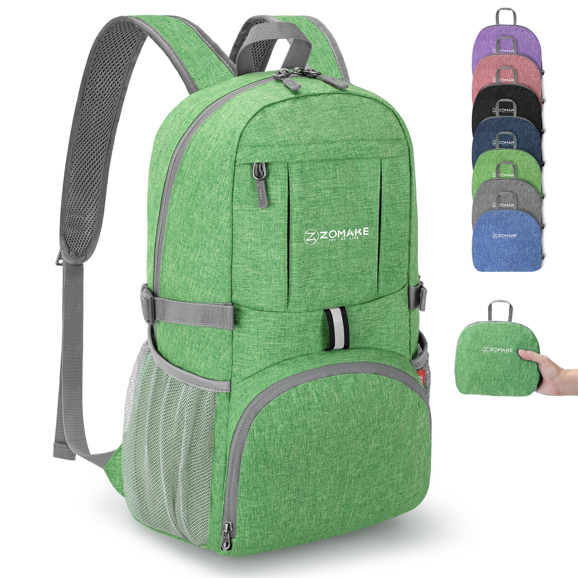 - Tear Resistant Day Pack:Our compact folding backpack material is rip-stop nylon, and rain will soak in after long exposure. If you have items that you need to protect from getting wet, be sure to put them in a ziplock bag before placing them inside this backpack. All stitches are strengthened to suit long-term use