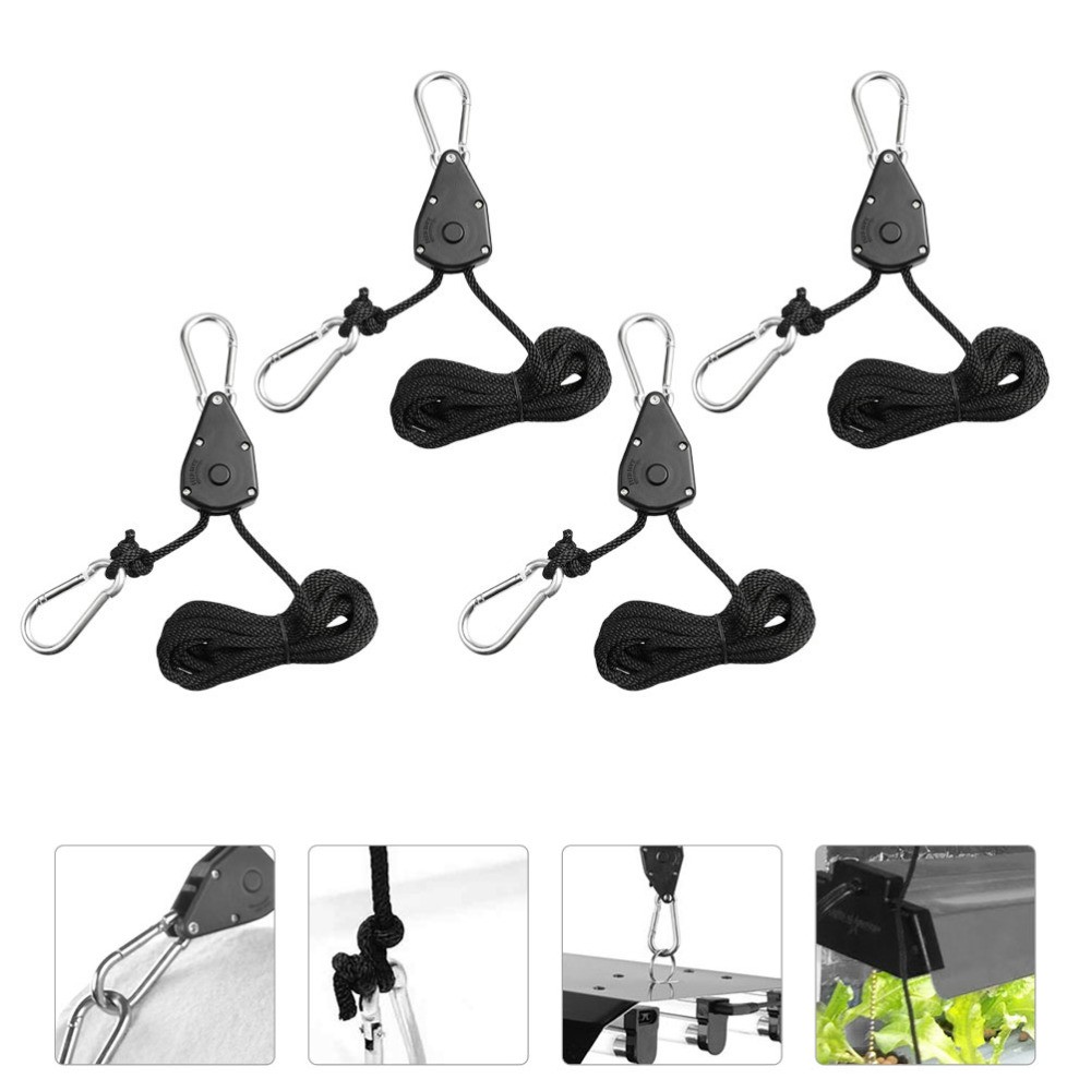 Description Easily raise your light when you are doing your routine work in the room, and just pull them down when you leave.Welcome to the highly durable Adjustable Rope Hangers, with the easy-to-use suspension system–Simply clip, pull and lock, they are excellent for hanging light fixtures, reflectors, , ventilation equipment, potted flowers and plants, fans and more! This suspension system enables you to raise and lower the light, or anything else, in one simple movement. With tension mechanism, the hood will stay in place once set at the desired height. It also perfectly meets the requirement of adjusting the hood to provide different light supply as plants grow