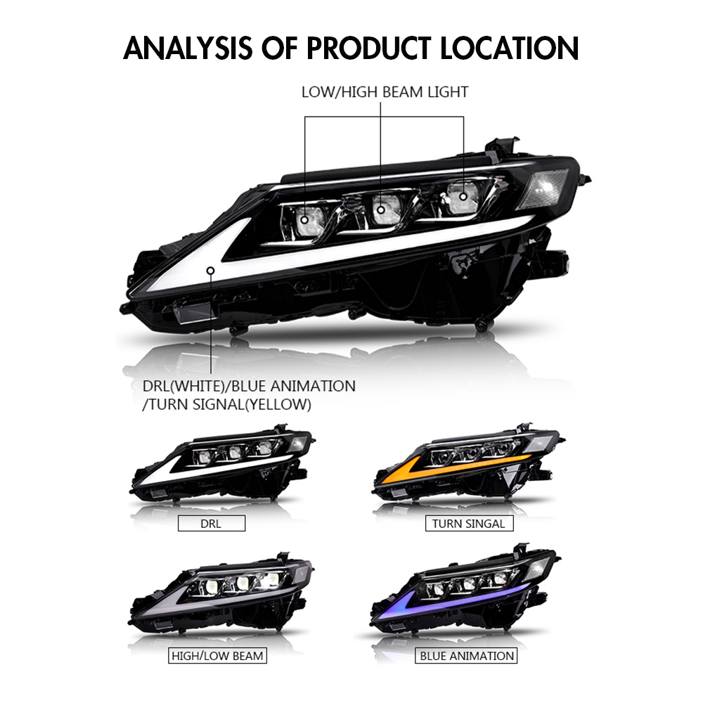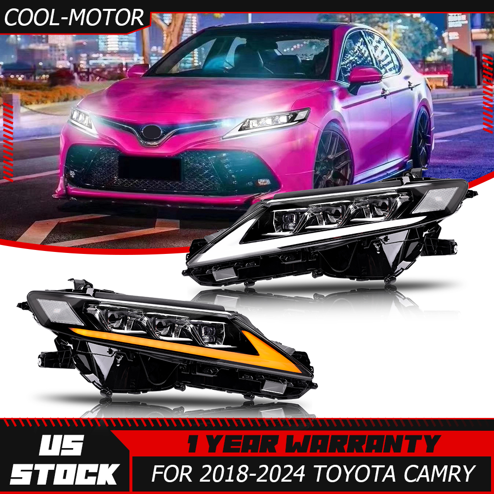 Pair LED DRL Headlights For 2018-2024 Toyota Camry 8th Gen w/Animation Assembly