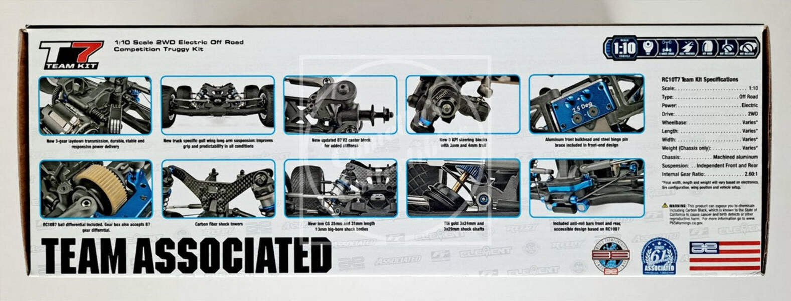 Based on Team Associated’s RC10B7 platform, the RC10T7 Team Kit is the next iteration of the successful truck platform. Design goals were to lower CG, add durability, and incorporate the RC10B7 adjustability and performance. Engineers inside Team Associated’s Area 51 first priority was the design of the new 3-gear laydown transmission to reduce drag and transfer all of the power to the larger truck tires.