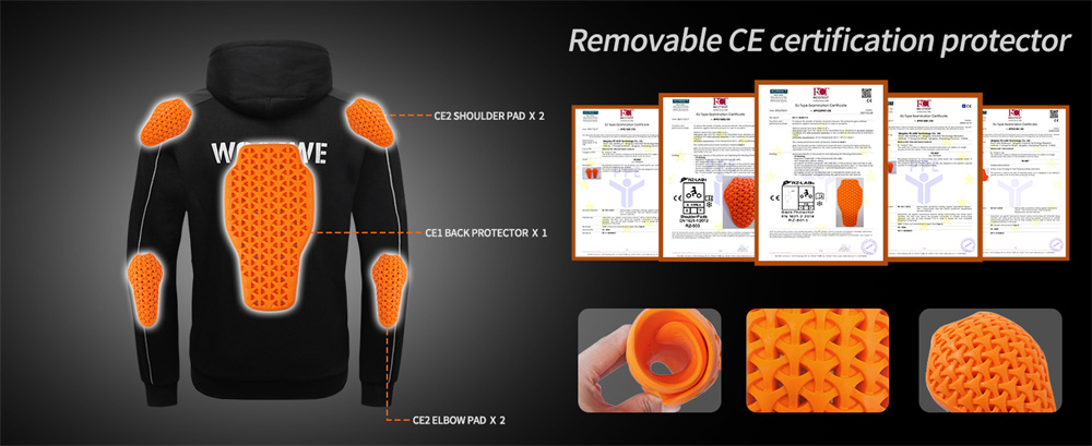 7. 【Vielseitige Verwendbarkeit】 Mit abnehmbarer CE-zertifizierter Protektorenausstattung (Schultern/Ellbogen/Rücken) für den Radsport, die sich nach dem Abnehmen in einen lässigen Hoodie verwandeln lässt.