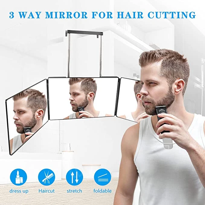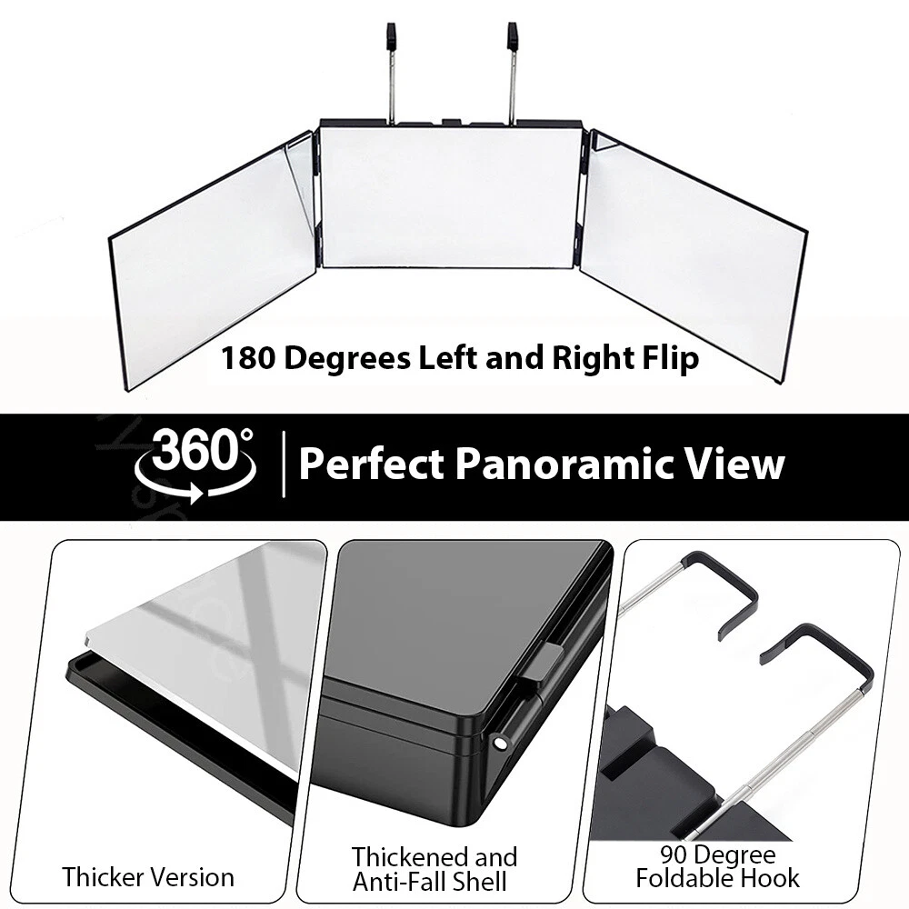【Perfekte DIY-Frisur】 Der Spiegel zum Selbst schneiden von Haaren verwendet hochwertige ABS- und Glasmaterialien mit einem 360-Grad-Betrachtungswinkel, der alle Winkel von Kopf und Gesicht problemlos sehen kann. Der Friseurspiegel kann Sie zu Ihrem eigenen Friseur machen, der die perfekte DIY-Frisur kreiert und Sie für immer selbstbewusst und charmant aussehen lässt.