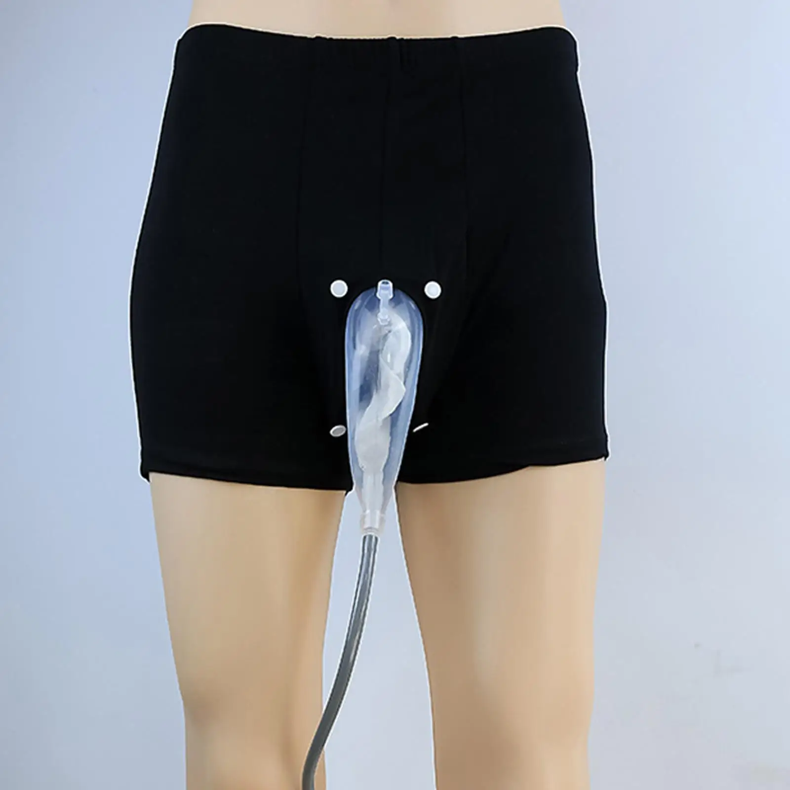 Wear it like a panty, with the ureter running down the calf, the urine bag tied around the calf, and placing the penis and testicles together in a non-woven lined urinal. You can walk around, and you won't be afraid of wet pants because it's annoying.