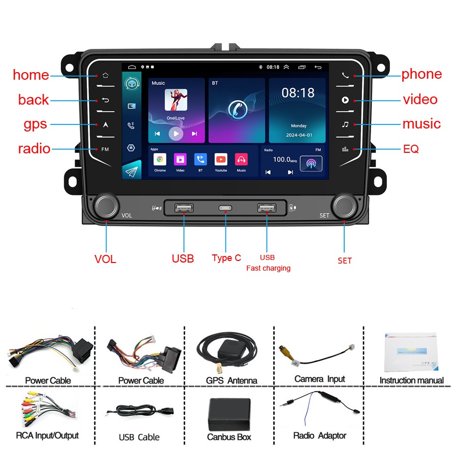 calls and switch the songs while driving, Canbus decoder included.