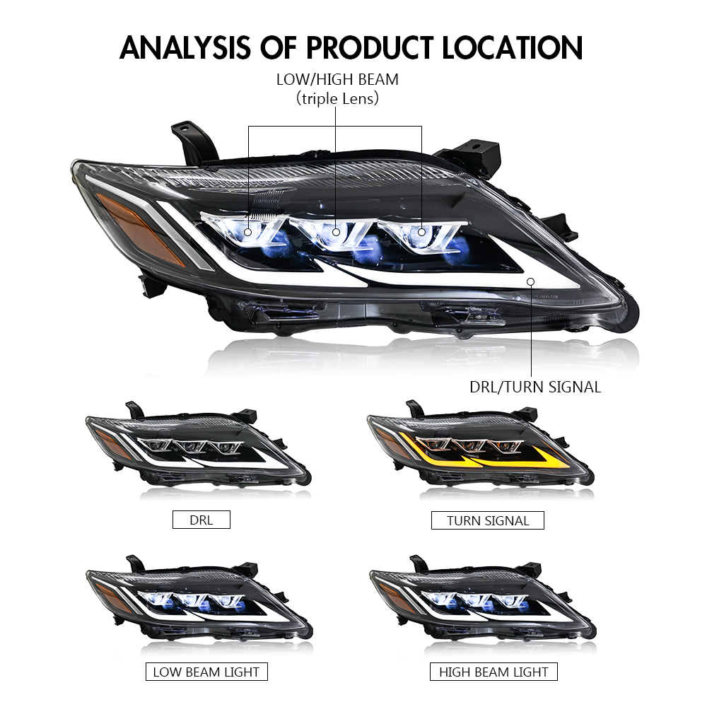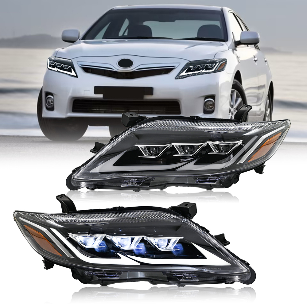 LED DRL Headlights For 2010 2011 Toyota Camry W/ Sequential Animation Front Lamp