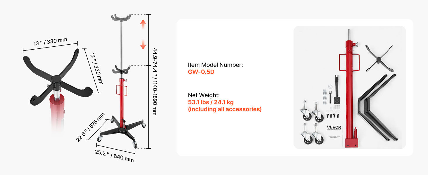 Doté de quatre roues solides, ce cric permet un déplacement aisé dans l'atelier. Il minimise l'effort et le temps requis pour manipuler des transmissions lourdes, offrant une solution pratique pour les opérations de démontage, de réparation et d'installation.