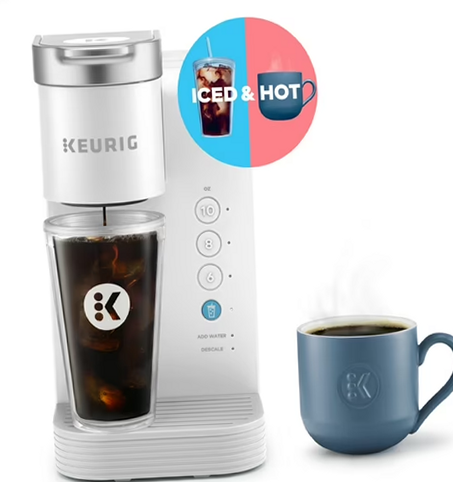 Keurig K-Express Essentials Plus Iced White Single Serve K-Cup Pod Coffee Maker Ice Rebuilding with the Keurig K-Express Essentials Plus Coffee Maker: Automatically adjusts the brewing temperature, starting warmer to help extract full flavor and then cooling to reduce ice melting.