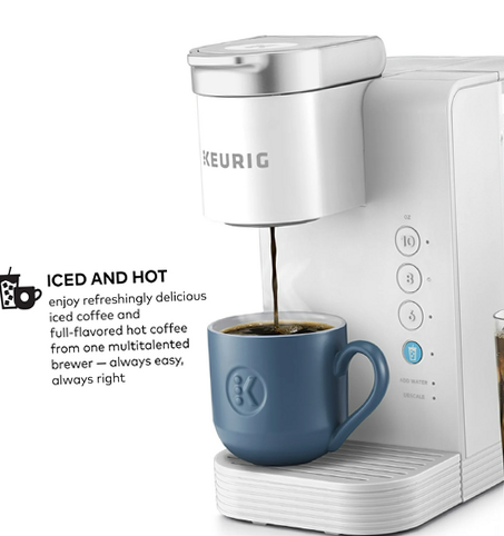 Brew Multiple Cup Sizes: Brew a refreshing cup of iced coffee with the Keurig K-Express Essentials Plus coffee maker and choose from 6, 8, and 10 oz sizes for hot coffee.