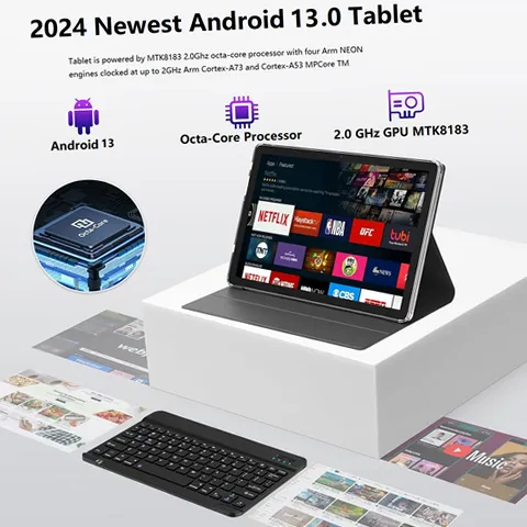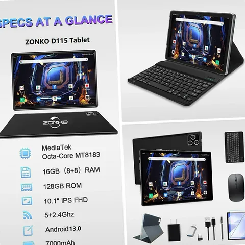 ZONKO Tablet Android 13 Tablet 10 Inch Android Tablet with Keyboard,5G WiFi Tablet,128GB ROM+16GB RAM (8+8Virtual) +1TB TF Expand,Octa-Core Processor,13MP+8MP Camera,Bluetooth,GPS,FHD Display,2 In 1 Tablet Powerful Processor: 10.1" tablet equipped with the newest Android 14 system and an Octa-Core processor for high-speed performance.