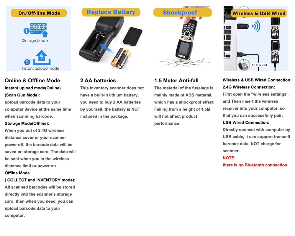 This laser bar code reader does not have a Bluetooth transmission function, and a wireless receiver is better than a Bluetooth connection.