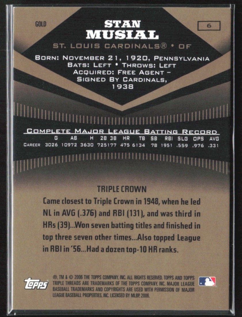 | Stan Musial 2006 Topps Triple Threads Gold /50 #6 St. Louis Cardinals |