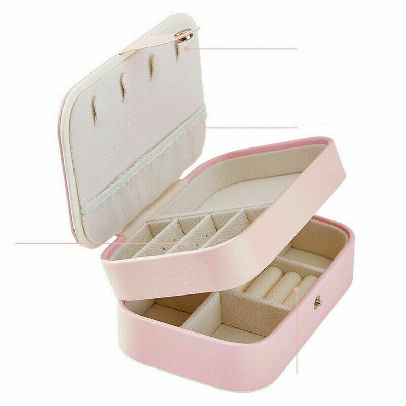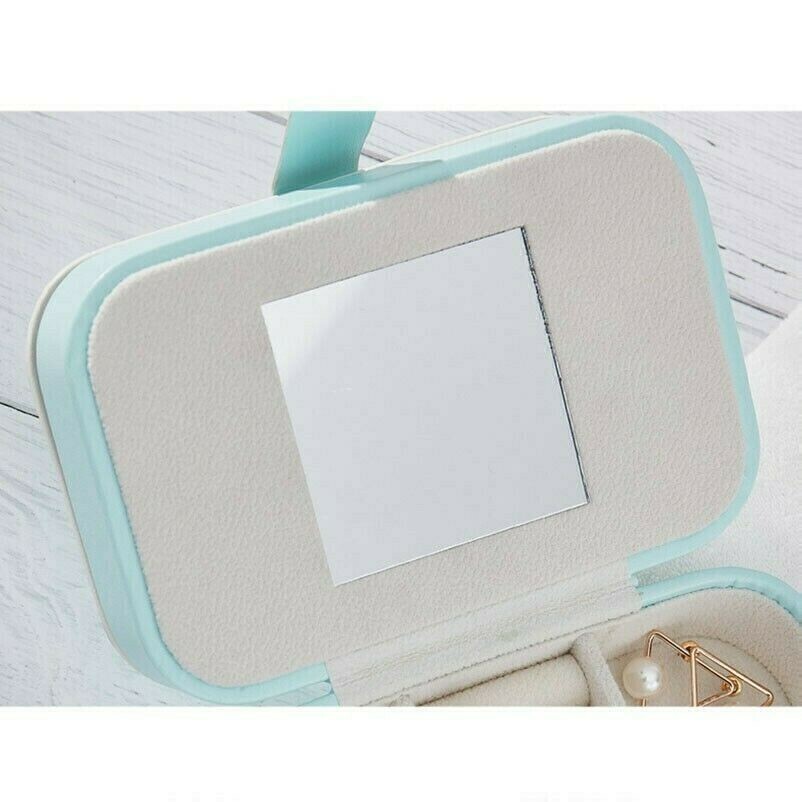 Cute Leather Jewelry Box with Mirror Women Ring Necklace Organizer Case