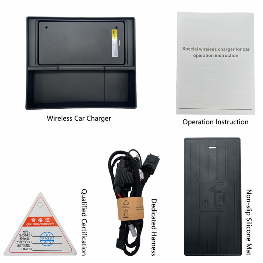Product description: ●-Suitable For Audi A6L 2019-2021 Car Wireless Charger ●-Input voltage: 9V--16V ●-Wireless charging output power: 20W/15W/ 7. 5W/ 5W ●-Wireless charging method: electromagnetic induction (wireless end) ●-Wireless charging interval: 2~8MM Product features: air-cooled temperature control design, car regulation circuit protection, safety and efficiency; original car style design, earmarked. How to use the device correctly to have a better experience? Tips: 1. Do not put any metal objects and sundries on the device, such as keys, coins, magnetic cards, mobile phone cases, magnets on the back, etc. Before use, be sure to remove them first, and then put the mobile phone on the device for use, so as not to cause the device to fail to work properly ! If the mobile phone case is too thick, it is recommended to remove the mobile phone case for a better charging experience! 2. If you turn on the Bluetooth hotspot to listen to music, swipe videos, or connect to high-power applications such as wireless Carplay, the charging effect will also be affected while charging. 3. Wireless chargers say goodbye to the wiring harness plugging and unplugging, the mobile phone can be charged immediately, improve driving safety, say goodbye to wiring harness entanglement, make the car cleaner, different mobile phones receive different power, please use it correctly and use it with confidence.