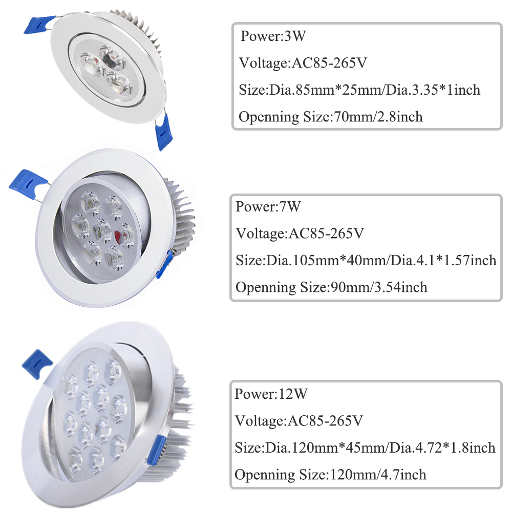 3W 7W 12W Recessed LED Ceiling Lamp Downlight Spotlight 85-265V Home Lighting Aluminum Ceiling Lamp Light For Warm Atmosphere Indoor Decoration LED Light