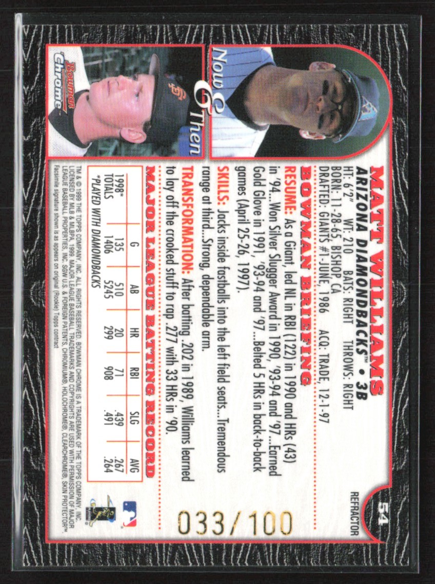 | Matt Williams 1999 Bowman Chrome International Refractor /100 #54 Arizona |