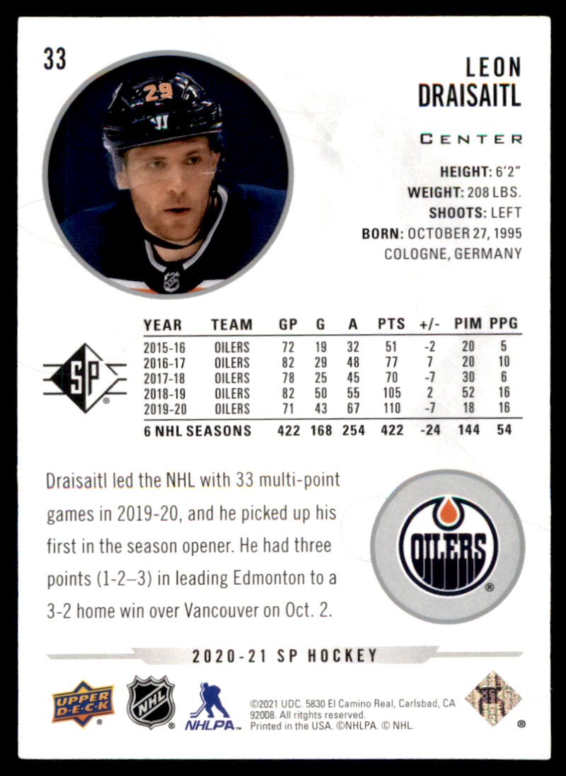 | 2021-22 SP Leon Draisaitl Edmonton Oilers #33 |