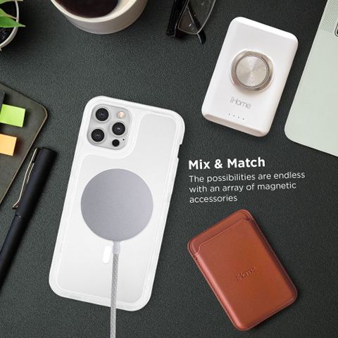 iHome 2IHPC2179X7W2 Magnetic Velo Phone Case for iPhone 15 Pro Max, White/Clear