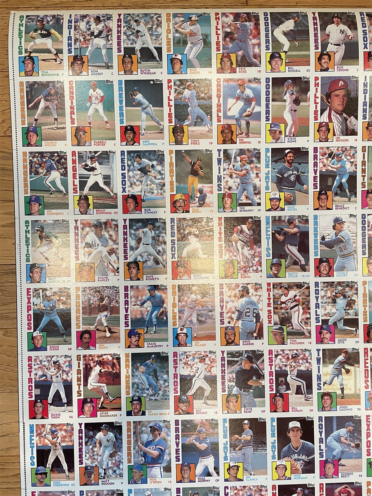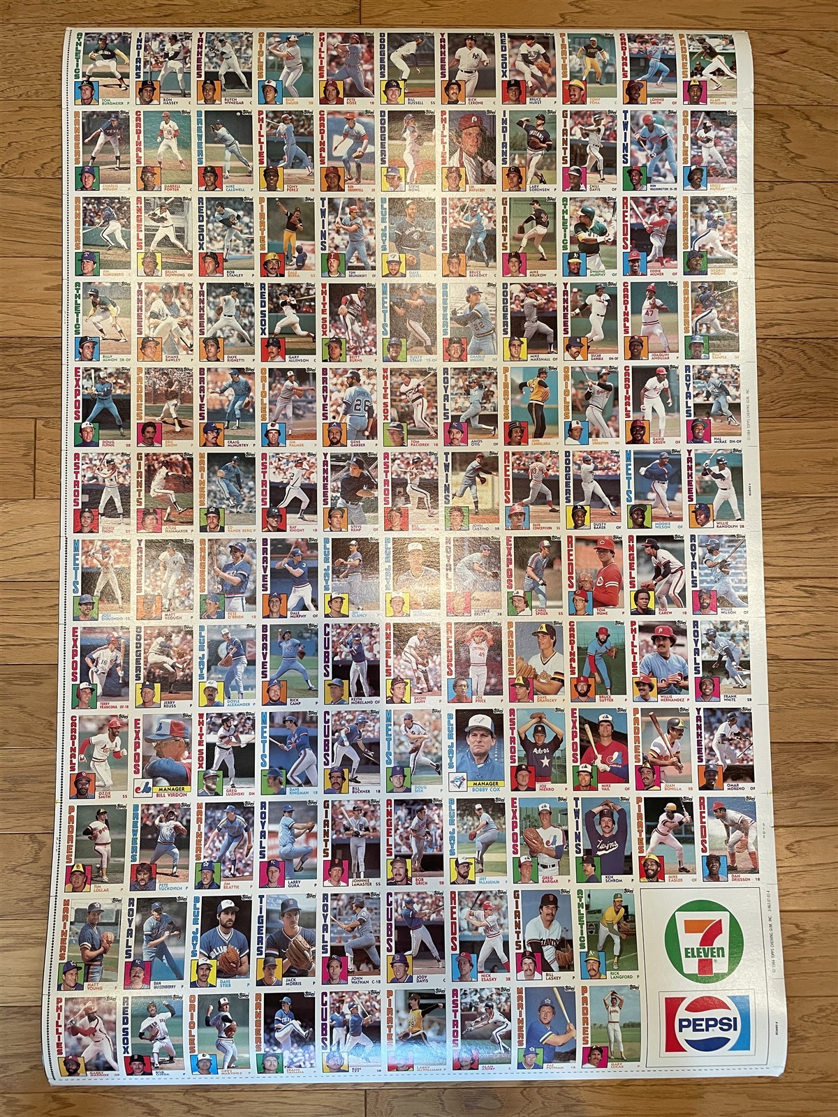 1984 Topps 7-11 Baseball Uncut Sheet Palmer Brett Carew Smith (132 Cards) *US70