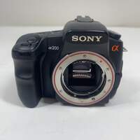 Sony a200 10.2MP Digital SLR DSLR Camera Items included in this sale: Sony a200 10.2MP Digital SLR DSLR Camera 1x 28-80mm 1x 70-300mm Sony Neck/Shoulder Strap Camera Bag *Please note, if it is not listed it is not included - such as power cables or other accessories. Specifications: Collection Digital Camera Sub-Collection Sony Digital Camera Brand Sony Model a200 Series Sony Alpha Shutter Count N/A Megapixel 10.2MP Video Recording 1080p Color Black Type Digital SLR DSLR Camera Release Year 2008 Mount Type A-Mount Condition Good UPC N/A Serial# 3079824 Cosmetic condition: This camera body is in fair cosmetic condition due to some scuffs, scratches and wear. Some of the wear is easily seen. The mirror and LCD both have some visible scuffs and scratches, but the images come out clear. Please view our close up photos, as these are taken of the actual item being offered for sale. Functionality condition: This camera has been tested and is fully functional. Does not come with a Battery or Charger.