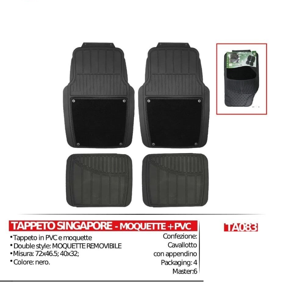 -Set di tappeti pvc /moquette ,provvisti di fondi puntinato antiscivolo che li rende stabili e sicuri .il disegno double moquette removibile , facili da pulire, resistenti per tutte le stagioni